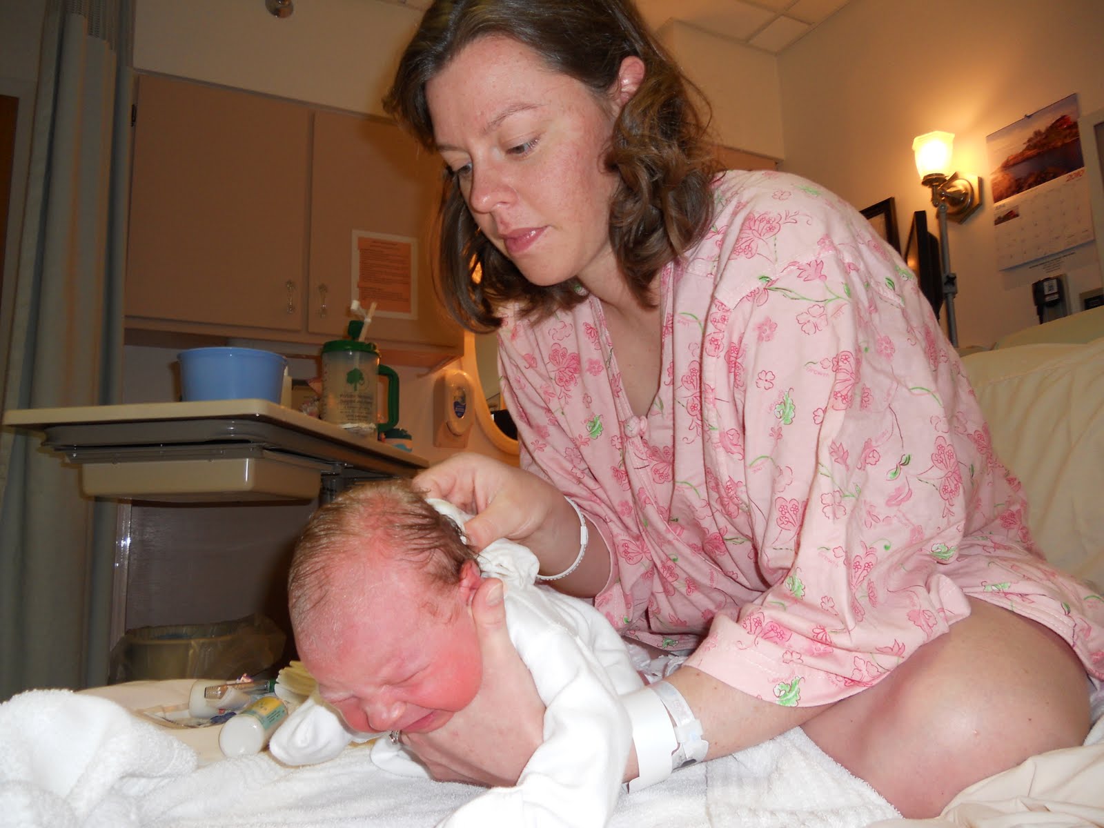 I hadn't had a chance to fill everybody in on the birth, so here it goes...On Monday, June 7th, we had an 8:20 am appointment with Dr. Nyhus. I wasn't feeling much for contractions up until this point, but I was 2 cm dilated. He stripped my membranes and sent us home with another appointment set up for Wednesday morning. All day Monday I started to feel some mild contractions. Initially they were pretty close together, about 7-10 minutes apart, but then they decreased to about 20 minutes apart. By the time I was ready for bed, they were 10 minutes apart again. Oma came that night, just in case. We were settling into bed around 10:30 that evening, when everything changed. The contractions quickly became more intense and were a consistent 5 minutes apart. We timed everything for about a 1/2 hour and then decided to go to the hospital. We arrived around 11:15 Monday evening. Everything took off from there. I quickly was dilated to 5 cm, when they were finally able to try to get the epidural started. I went from 5 cm to 8 cm in 45 minutes, so I was already at 8 cm by the time the epidural was in, and it didn't fully take effect until it was time to push. Greta Mary entered this world at 2:53 am on her Daddy's birthday! We spent one additional night in the hospital and came home the next day. We've been so blessed to have all the support of our friends and family. We've so appreciated all the nice e-mails, phone calls, and texts. We also can't express how nice it's been to have Gramma and Grampa Gillespie, Oma, and Auntie Kathryn come and visit and help out with our bundle of joy.
